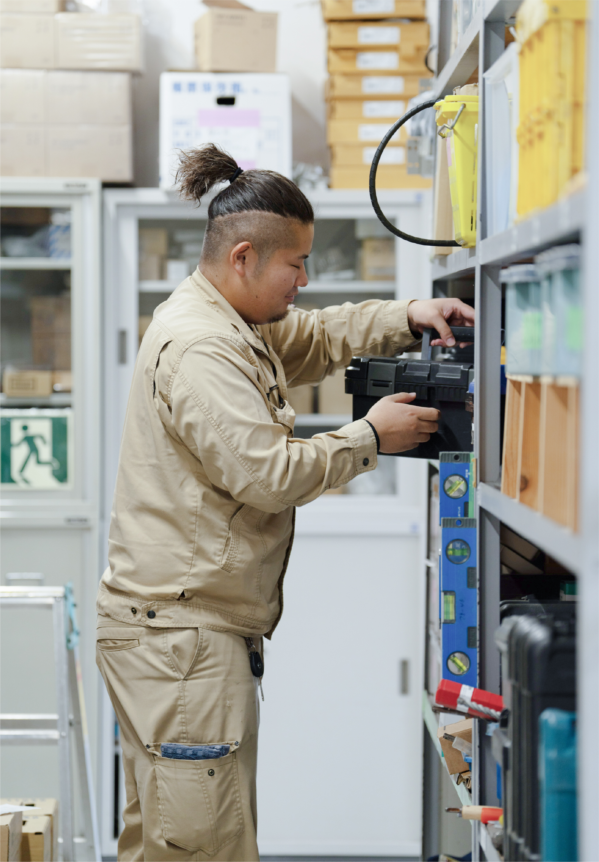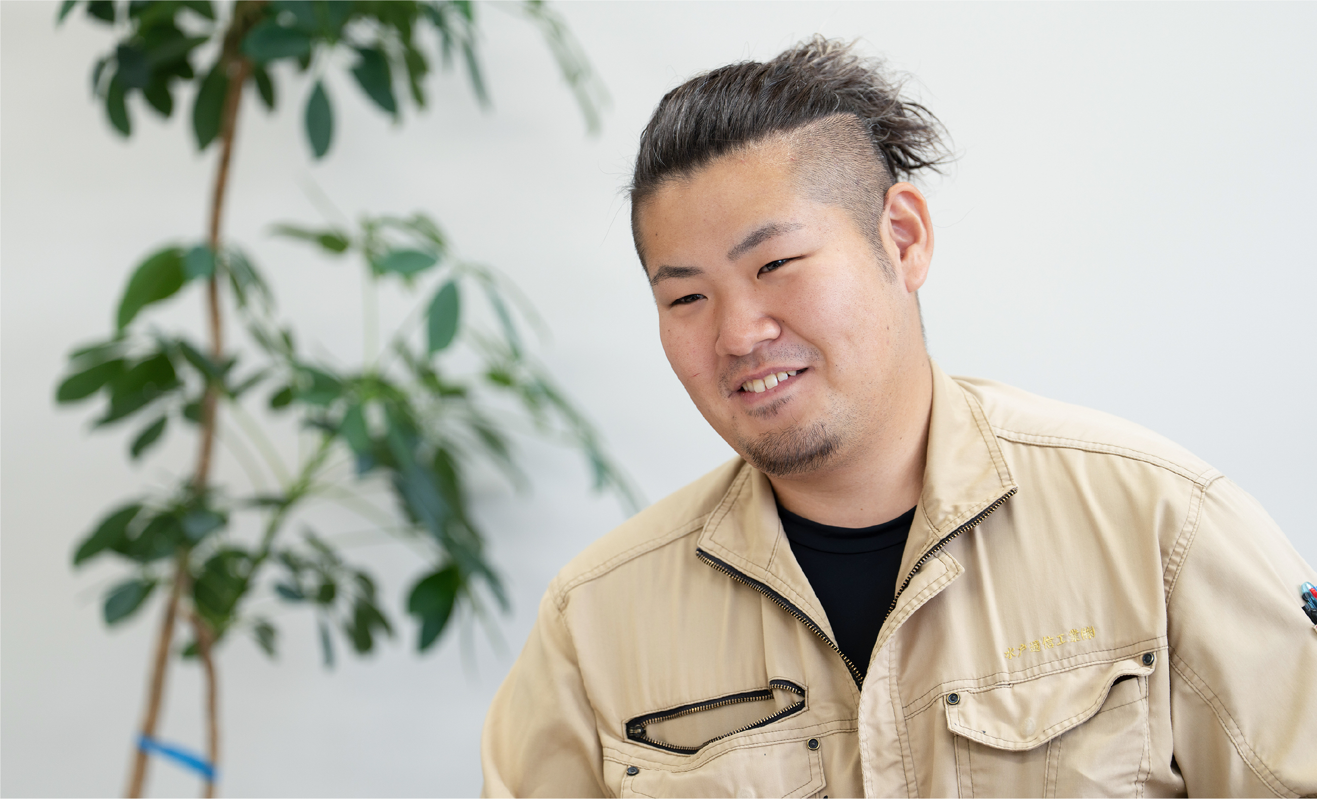 藤枝吏於です。水戸通信工業では、主に弱電工事を担当しています。